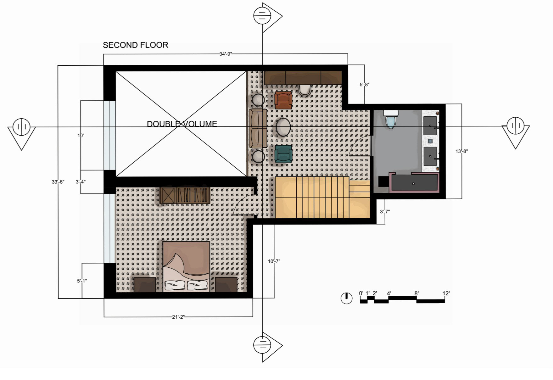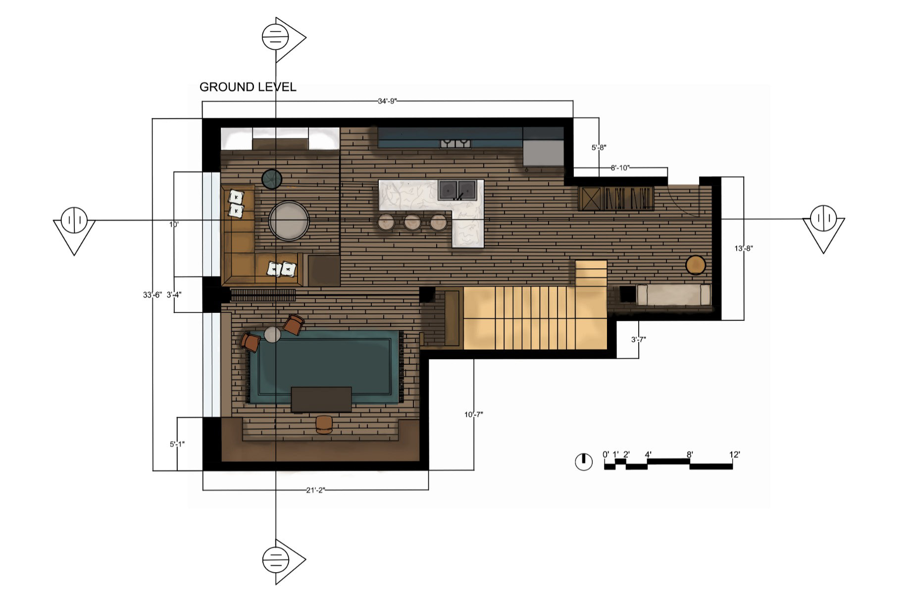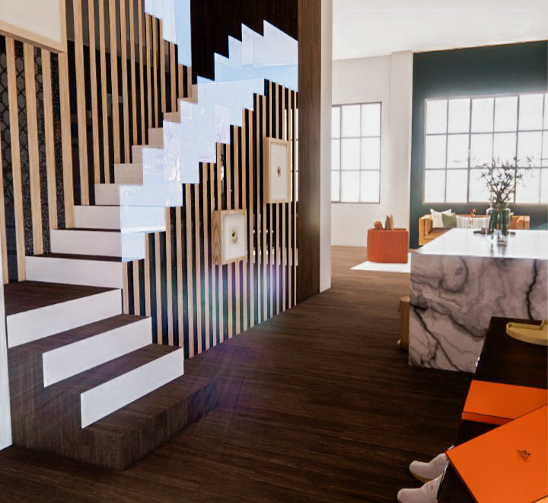 This live/work loft is thoughtfully designed to maximize spatial efficiency while seamlessly balancing functionality and comfort. The layout supports daily living, focused work, and effortless hosting through intentional zoning and adaptable design solutions.