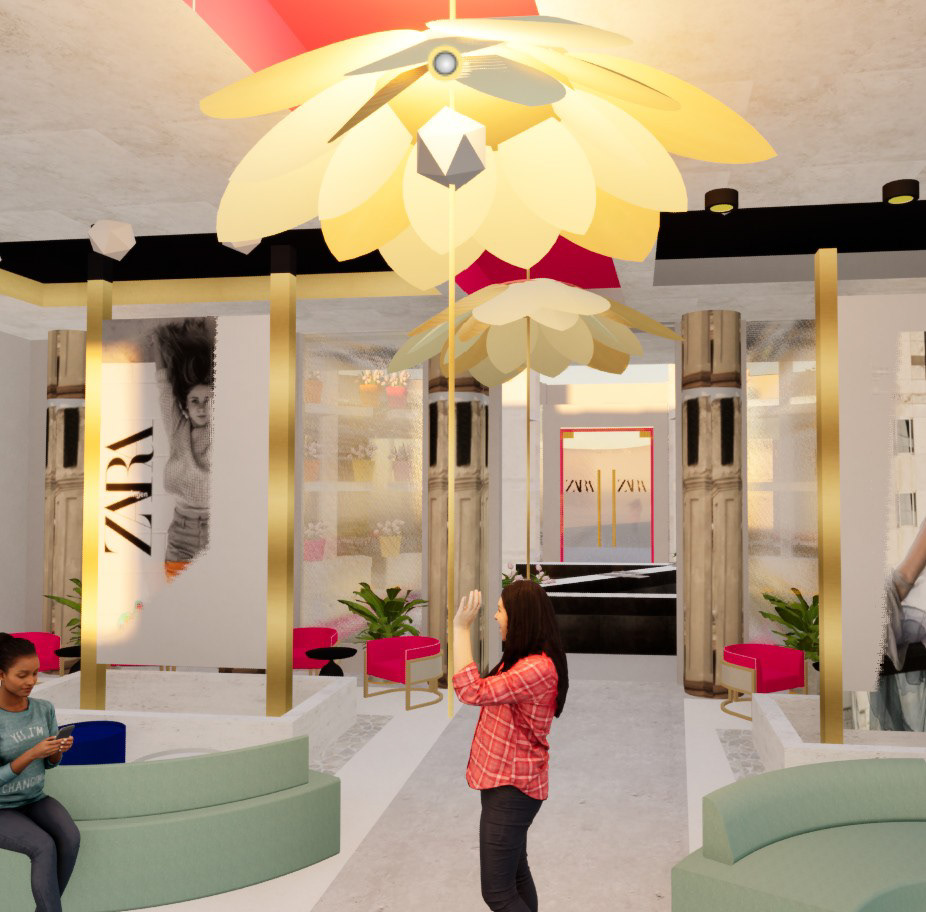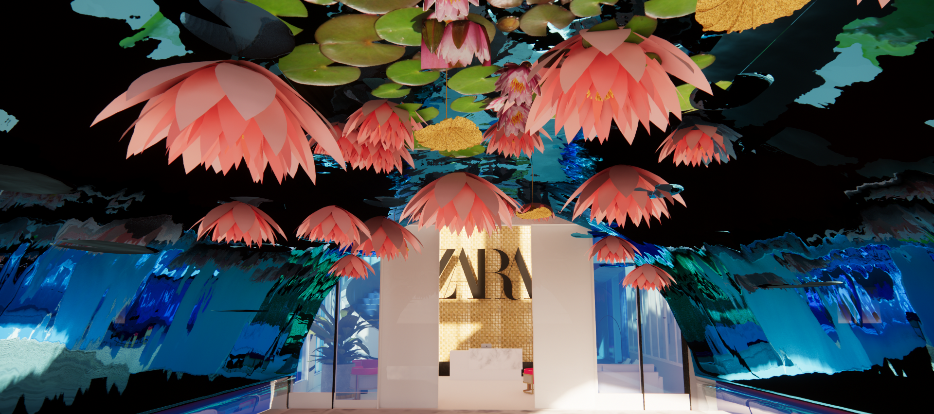Curating a space that reflects ZARA’s sustainability practices while creating a visual focal point, using intentional material selection, reduced environmental impact, and cohesive design strategies to reinforce the brand’s commitment to sustainable innovation.